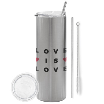 Love is Love, Tumbler stainless steel Silver 600ml, with metal straw & cleaning brush