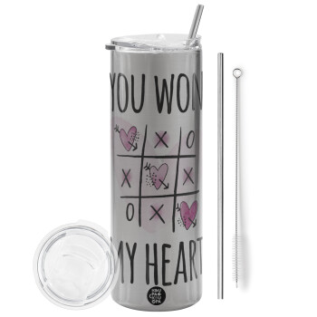 You won my heart, Tumbler stainless steel Silver 600ml, with metal straw & cleaning brush