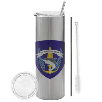 Eco friendly 600ml thermal cup with a metallic reusable straw. Enjoy your favorite beverage at any moment in this unique eco-friendly thermos. It maintains the temperature for several hours and is made from stainless steel. Suitable for both hot and cold beverages. It comes with a cleaning brush for the straw.