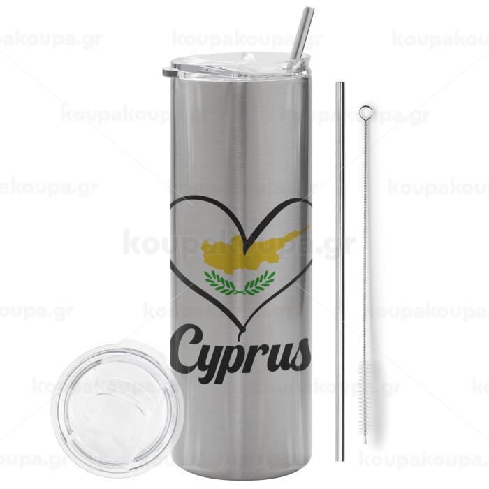 Cyprus flag, Tumbler stainless steel Silver 600ml, with metal straw & cleaning brush