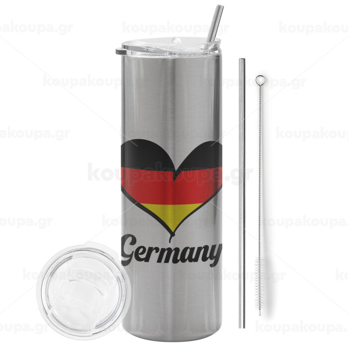 Germany flag, Tumbler stainless steel Silver 600ml, with metal straw & cleaning brush