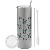 Panda, Tumbler stainless steel Silver 600ml, with metal straw & cleaning brush