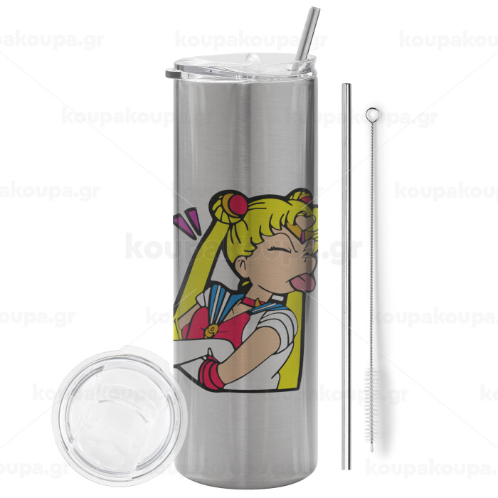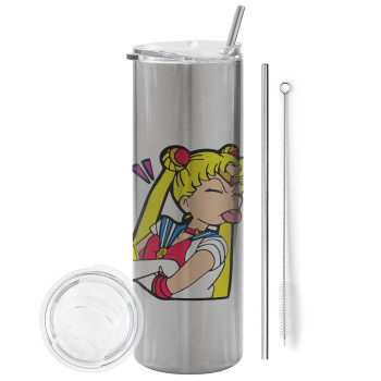 Sailor Moon, Tumbler stainless steel Silver 600ml, with metal straw & cleaning brush