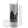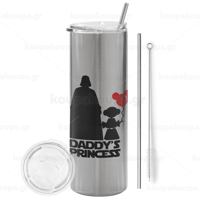 Daddy's princess, Tumbler stainless steel Silver 600ml, with metal straw & cleaning brush