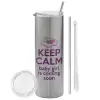 KEEP CALM baby girl is coming soon!!!, Tumbler stainless steel Silver 600ml, with metal straw & cleaning brush
