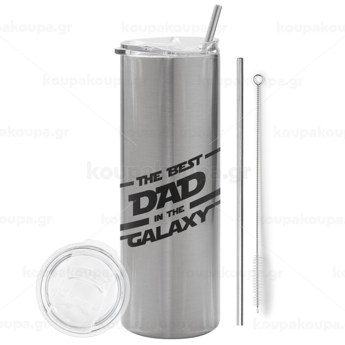 The Best DAD in the Galaxy, Tumbler stainless steel Silver 600ml, with metal straw & cleaning brush