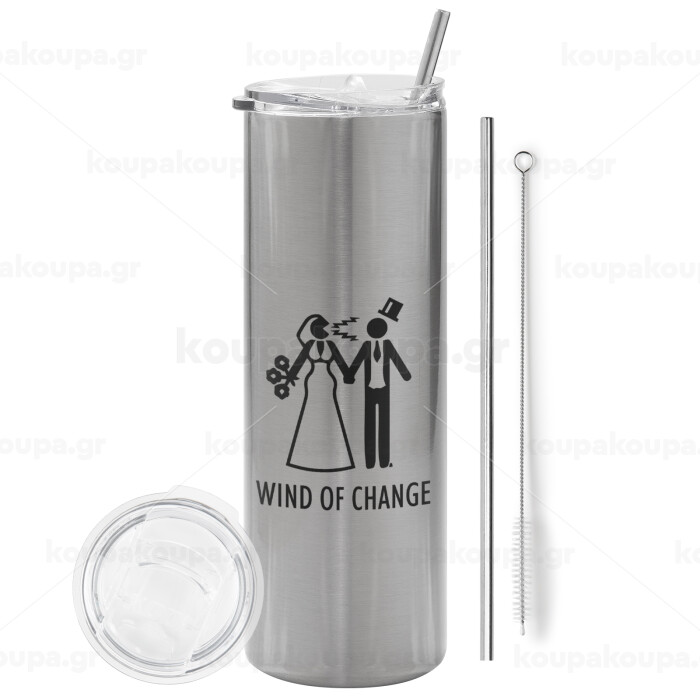 Couple Wind of Change, Tumbler stainless steel Silver 600ml, with metal straw & cleaning brush