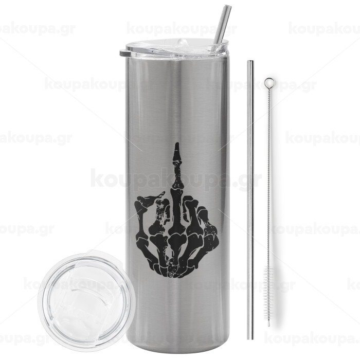 Middle finger, Tumbler stainless steel Silver 600ml, with metal straw & cleaning brush