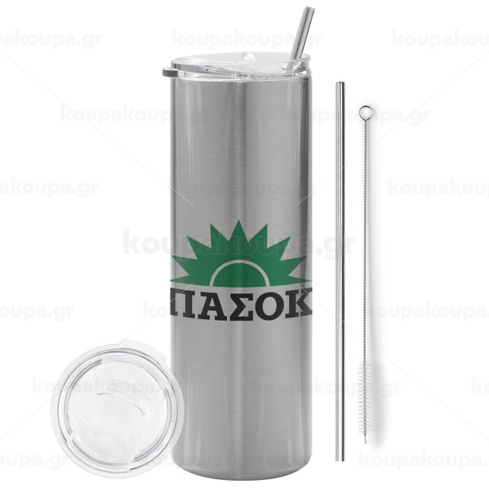 pasok, Tumbler stainless steel Silver 600ml, with metal straw & cleaning brush