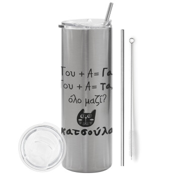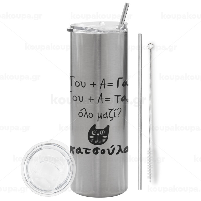 Κατσούλα, Tumbler stainless steel Silver 600ml, with metal straw & cleaning brush