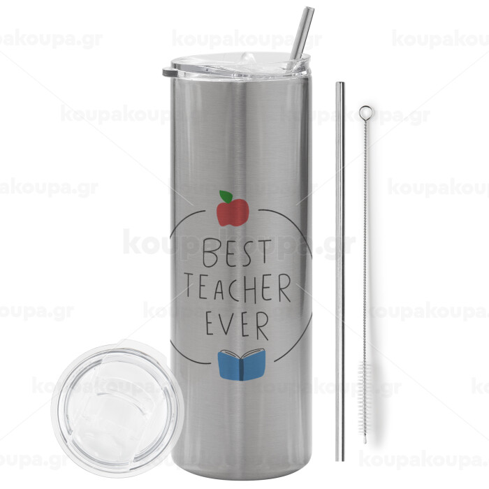 Best teacher ever, Tumbler stainless steel Silver 600ml, with metal straw & cleaning brush