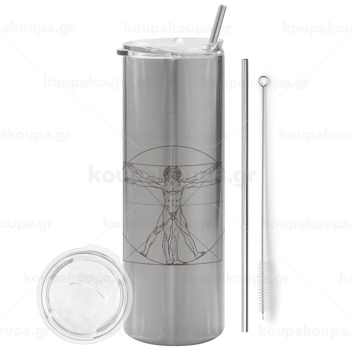 Leonardo da vinci Vitruvian Man, Tumbler stainless steel Silver 600ml, with metal straw & cleaning brush