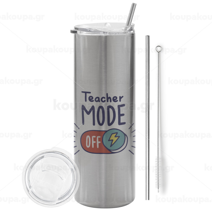 Teacher mode, Tumbler stainless steel Silver 600ml, with metal straw & cleaning brush