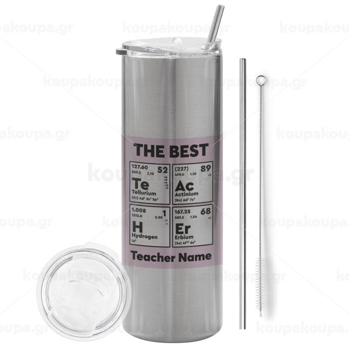 THE BEST Teacher chemical symbols, Tumbler stainless steel Silver 600ml, with metal straw & cleaning brush