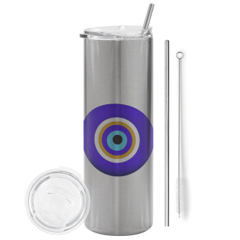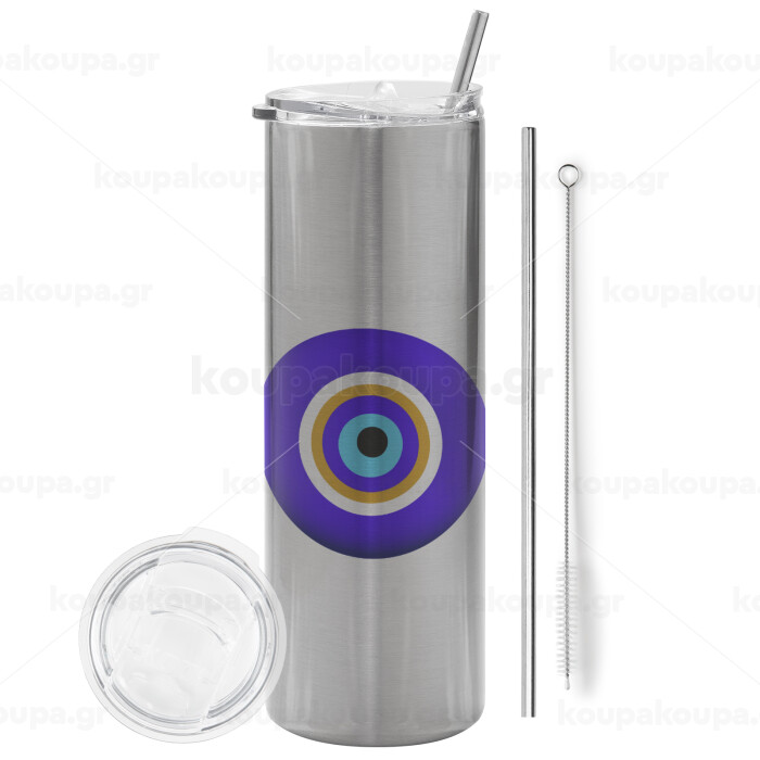 Το μάτι, Tumbler stainless steel Silver 600ml, with metal straw & cleaning brush