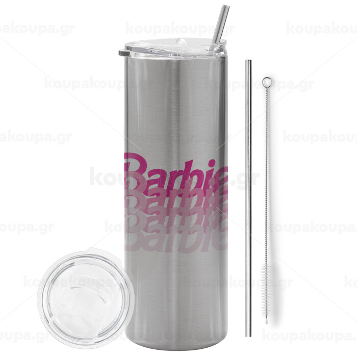 Barbie repeat, Tumbler stainless steel Silver 600ml, with metal straw & cleaning brush
