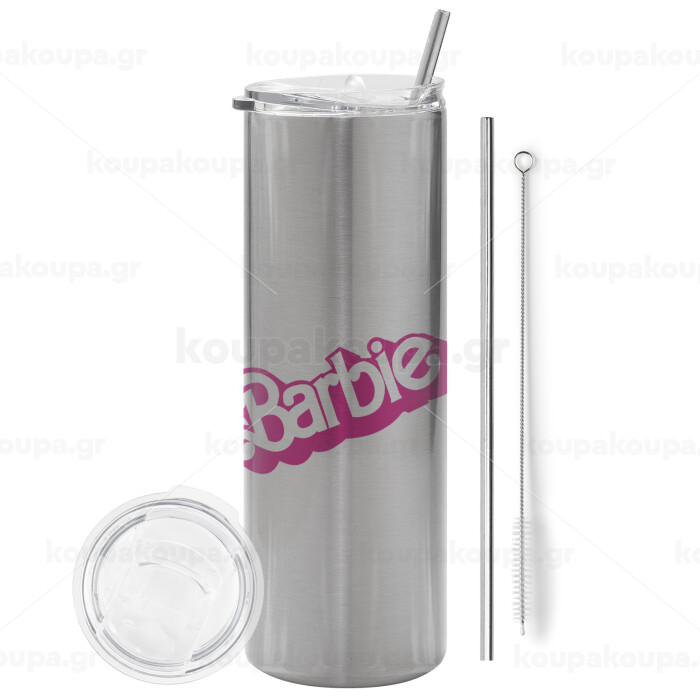 Barbie, Tumbler stainless steel Silver 600ml, with metal straw & cleaning brush