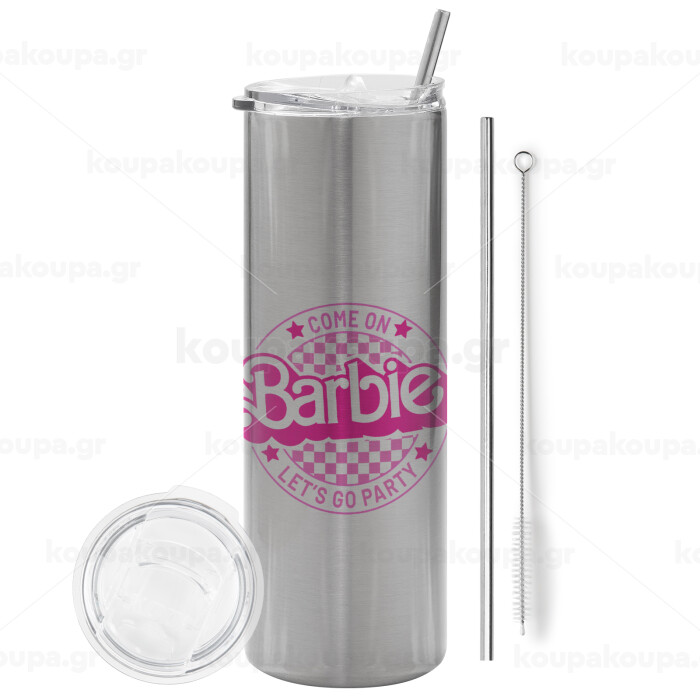 Come On Barbie Lets Go Party , Tumbler stainless steel Silver 600ml, with metal straw & cleaning brush