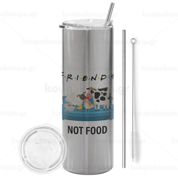 friends, not food, Tumbler stainless steel Silver 600ml, with metal straw & cleaning brush