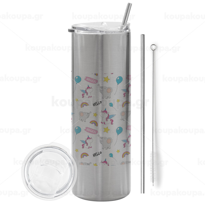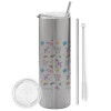 Happy Clouds Doodle, Tumbler stainless steel Silver 600ml, with metal straw & cleaning brush