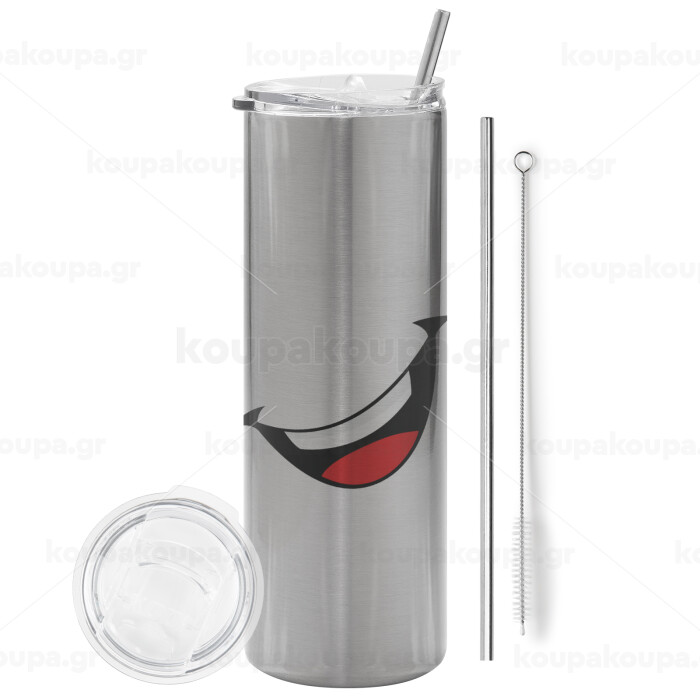 Φατσούλα γελάω!!!, Tumbler stainless steel Silver 600ml, with metal straw & cleaning brush