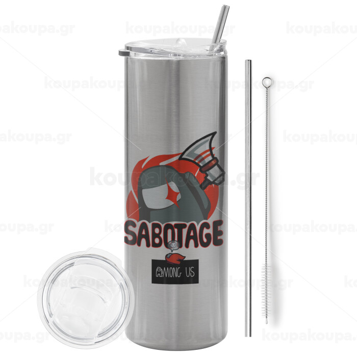 Among US Sabotage, Tumbler stainless steel Silver 600ml, with metal straw & cleaning brush