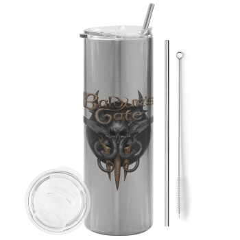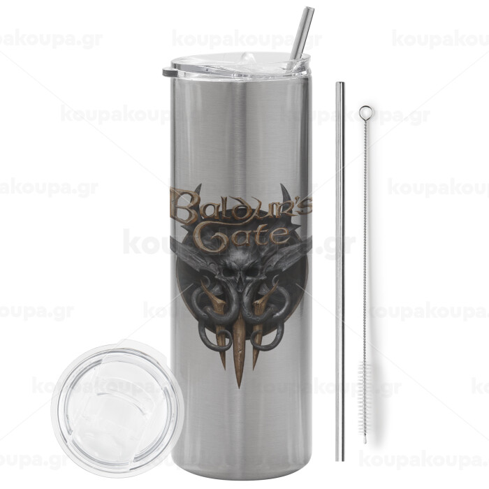 Baldur's Gate, Tumbler stainless steel Silver 600ml, with metal straw & cleaning brush