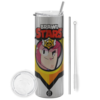 Brawl Stars Colt, Tumbler stainless steel Silver 600ml, with metal straw & cleaning brush