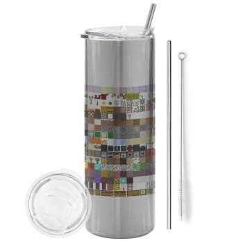 Minecraft blocks, Tumbler stainless steel Silver 600ml, with metal straw & cleaning brush