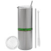 Minecraft logo green, Tumbler stainless steel Silver 600ml, with metal straw & cleaning brush