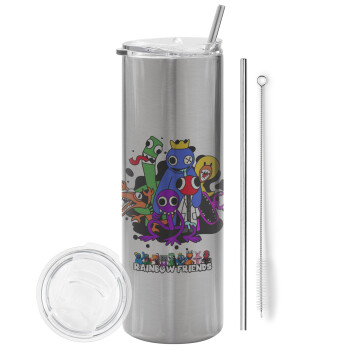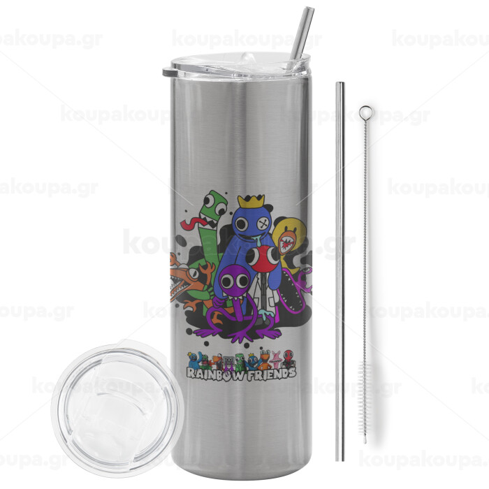 Rainbow friends, Tumbler stainless steel Silver 600ml, with metal straw & cleaning brush