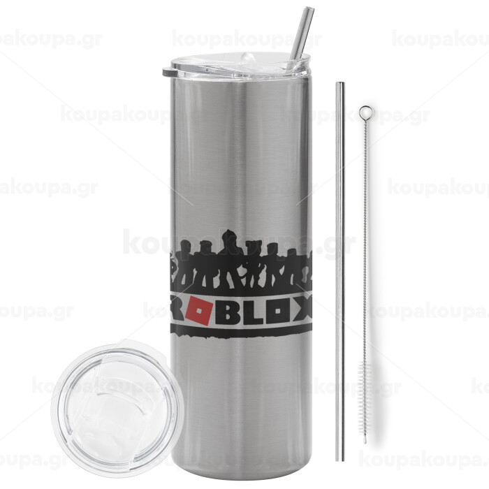 Roblox team, Tumbler stainless steel Silver 600ml, with metal straw & cleaning brush