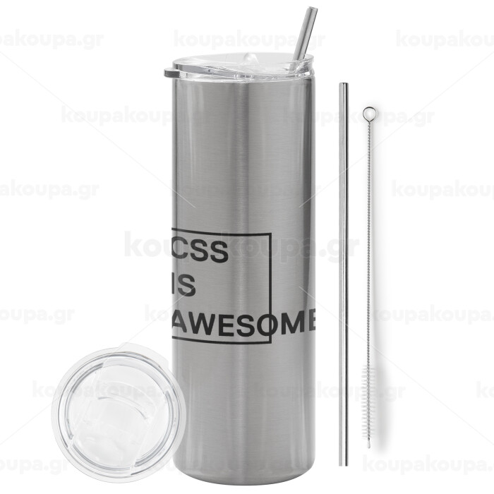 CSS is awesome, Tumbler stainless steel Silver 600ml, with metal straw & cleaning brush