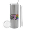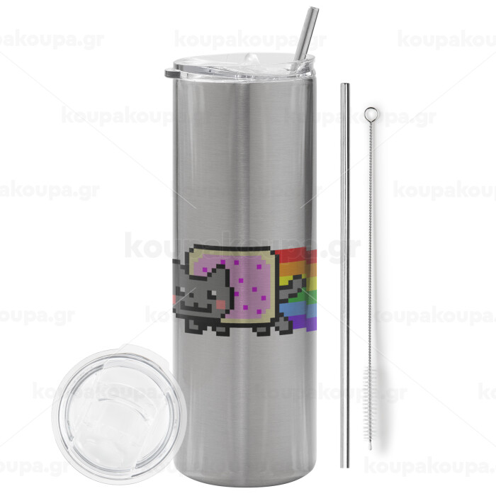 Nyan Pop-Tart Cat, Tumbler stainless steel Silver 600ml, with metal straw & cleaning brush