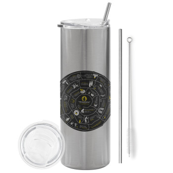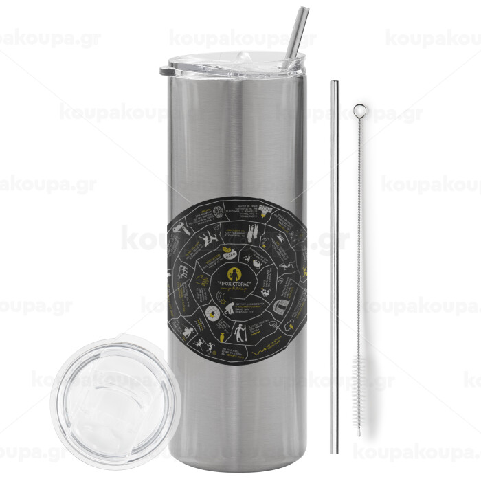 Προχίστορας, Tumbler stainless steel Silver 600ml, with metal straw & cleaning brush