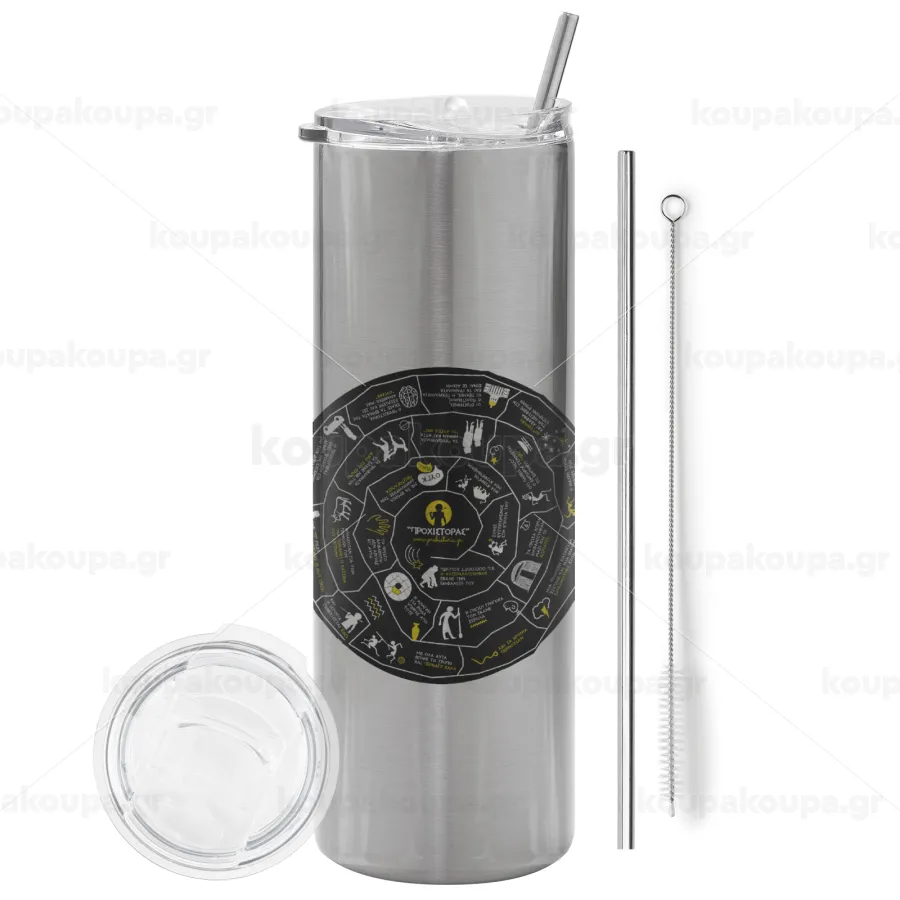 Προχίστορας, Tumbler stainless steel Silver 600ml, with metal straw & cleaning brush