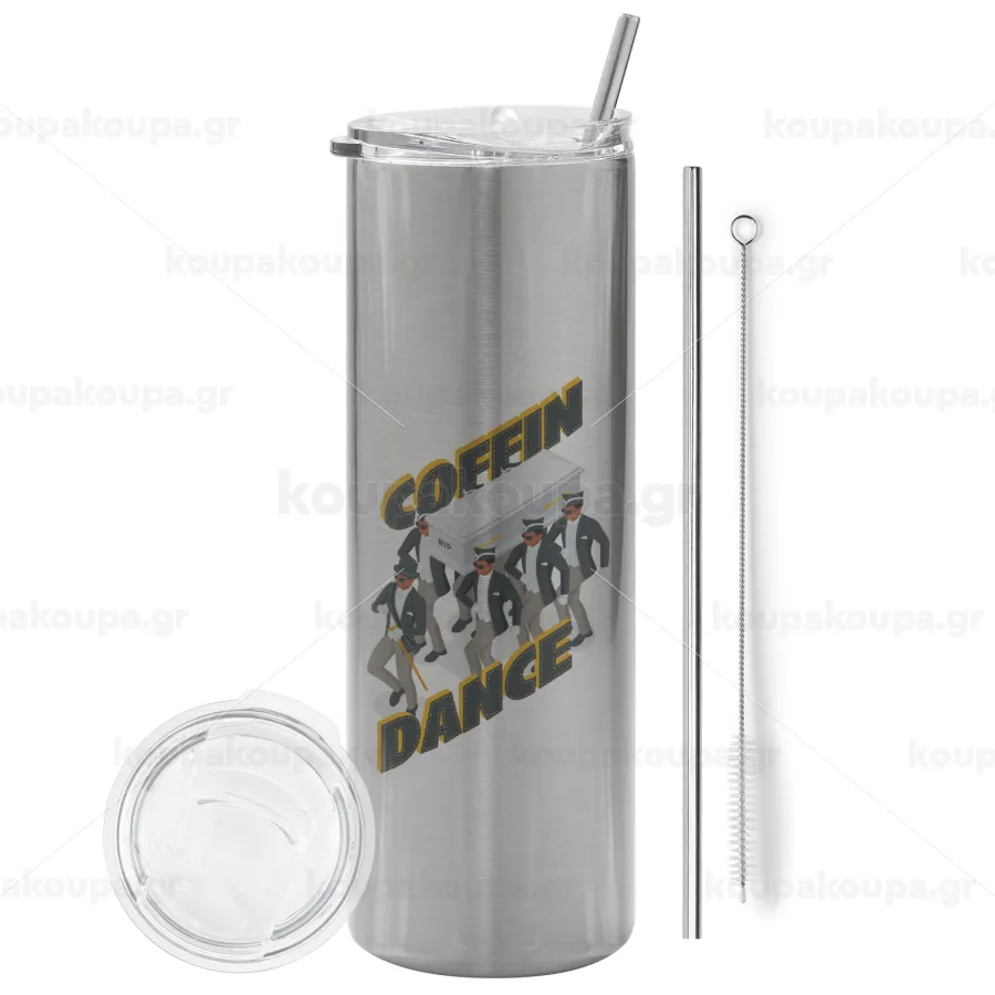 Coffin Dance!, Tumbler stainless steel Silver 600ml, with metal straw & cleaning brush