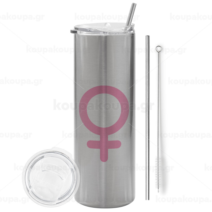 FEMALE, Tumbler stainless steel Silver 600ml, with metal straw & cleaning brush