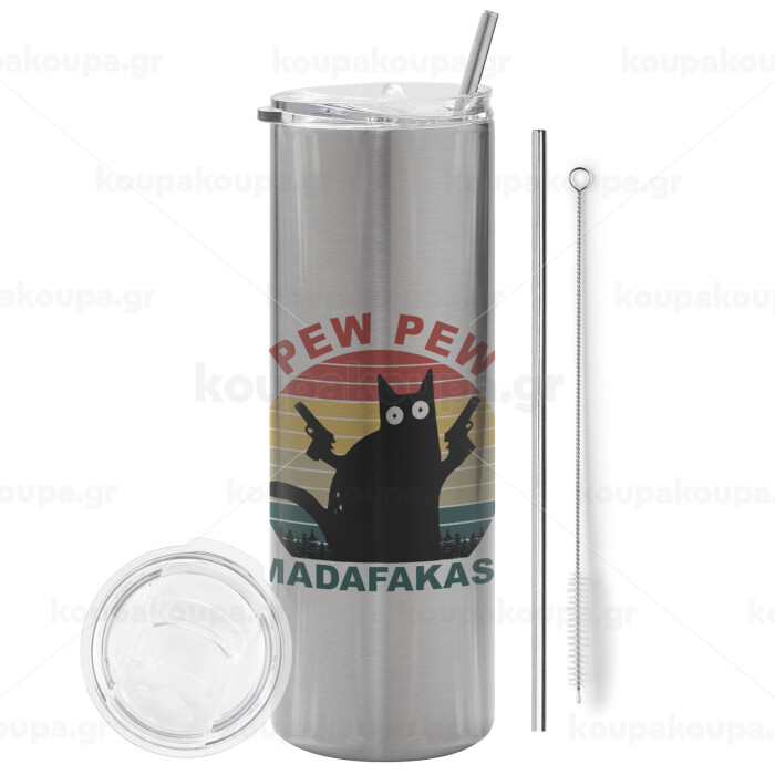 PEW PEW madafakas, Tumbler stainless steel Silver 600ml, with metal straw & cleaning brush
