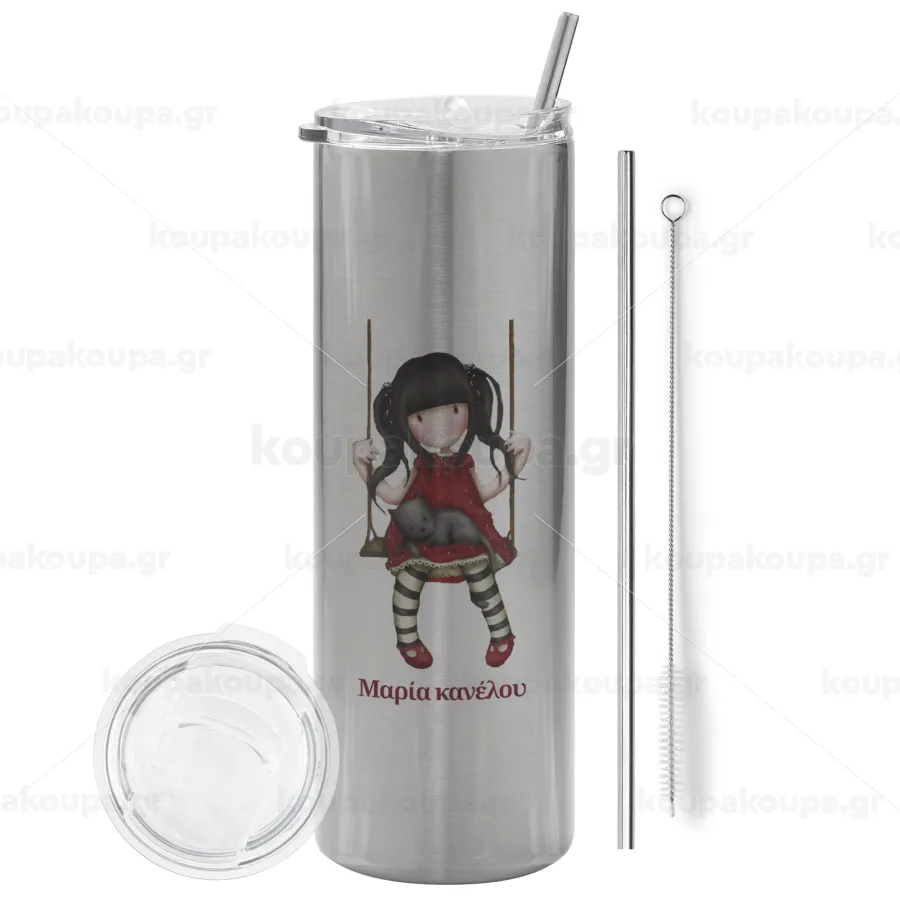 Santoro, Tumbler stainless steel Silver 600ml, with metal straw & cleaning brush