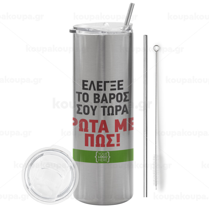 Έλεγξε το βάρος σου ρώτα με πως! {your logo here}, Tumbler stainless steel Silver 600ml, with metal straw & cleaning brush
