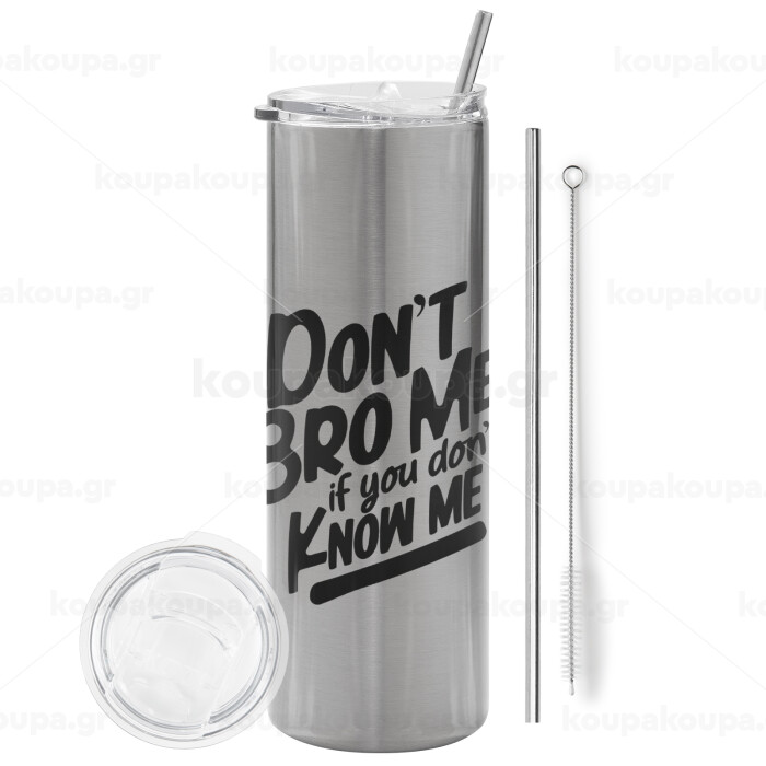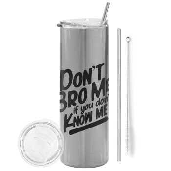Dont't bro me, if you don't know me., Tumbler stainless steel Silver 600ml, with metal straw & cleaning brush