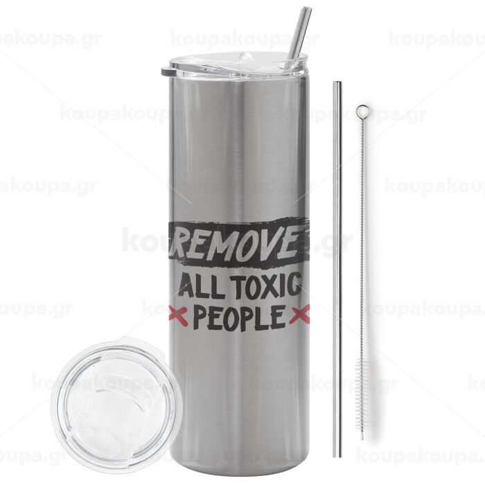 Remove all toxic people, Tumbler stainless steel Silver 600ml, with metal straw & cleaning brush