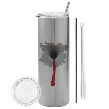 Bullet holes, Tumbler stainless steel Silver 600ml, with metal straw & cleaning brush
