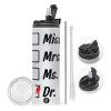 Miss, Mrs, Ms, DR, Travel Tumbler 2 Lids, with metal straw & cleaning brush (Stainless steel 304 Food grade, BPA free, 600ml)