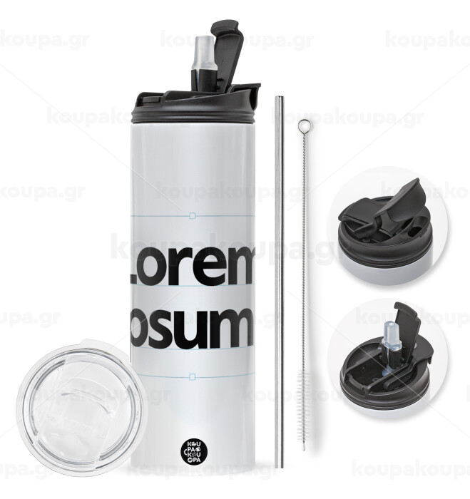 Lorem ipsum, Travel Tumbler 2 Lids, with metal straw & cleaning brush (Stainless steel 304 Food grade, BPA free, 600ml)