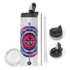 Wind compass, Travel Tumbler 2 Lids, with metal straw & cleaning brush (Stainless steel 304 Food grade, BPA free, 600ml)