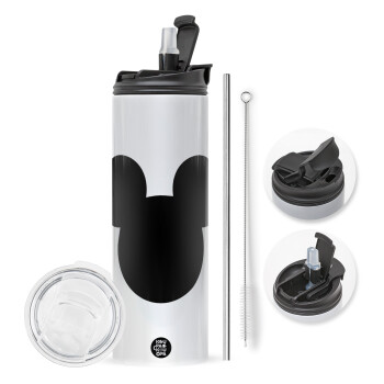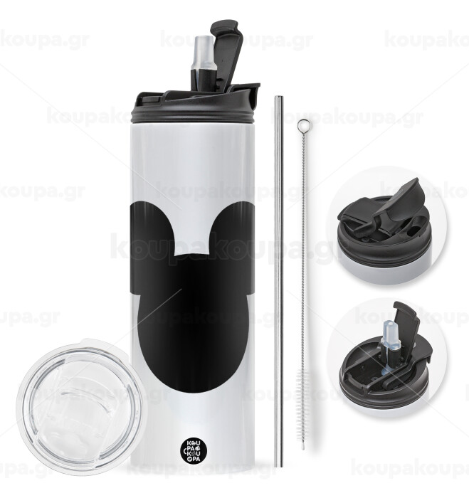 mouse man, Travel Tumbler 2 Lids, with metal straw & cleaning brush (Stainless steel 304 Food grade, BPA free, 600ml)