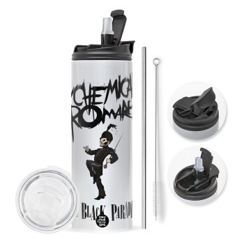 My Chemical Romance Black Parade, Travel Tumbler 2 Lids, with metal straw & cleaning brush (Stainless steel 304 Food grade, BPA free, 600ml)