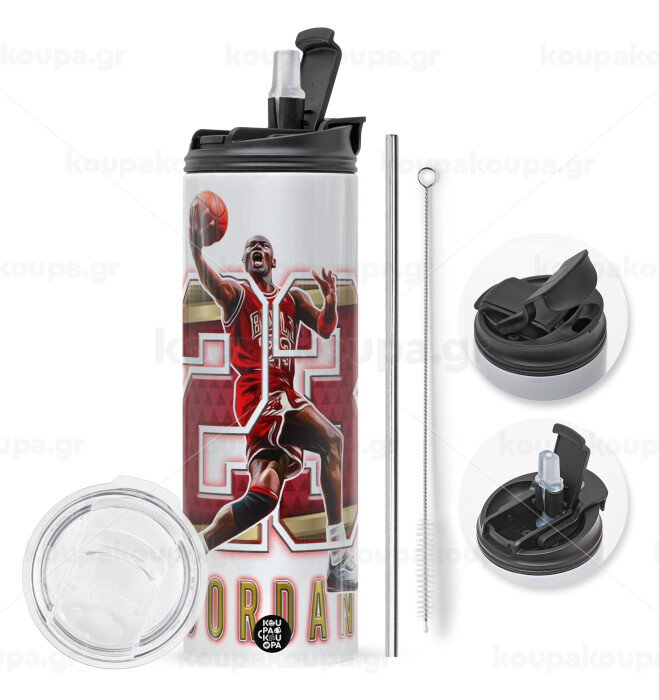 Jordan 23, Travel Tumbler 2 Lids, with metal straw & cleaning brush (Stainless steel 304 Food grade, BPA free, 600ml)